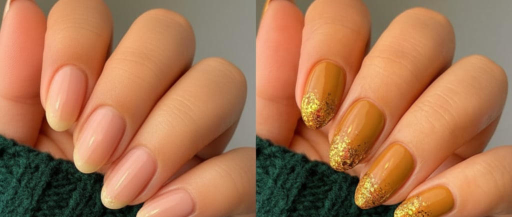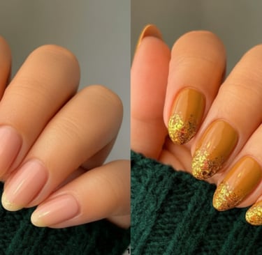 Cuando vio el tono latte, supo que era perfecto. Cálido, elegante, pero le faltaba algo. "¿Y si le ponemos brillo dorado en las puntas?", le sugirió su manicurista.